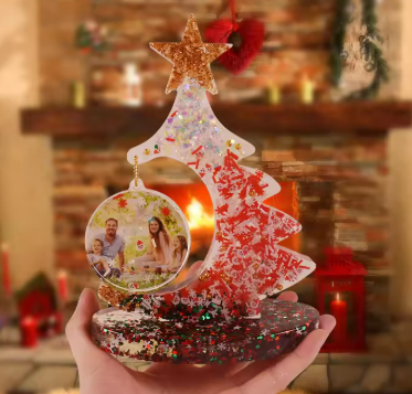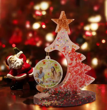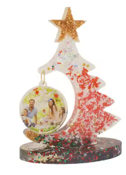 What You’ll Make: A glittering resin Christmas tree with a circular photo ornament embedded right inside!